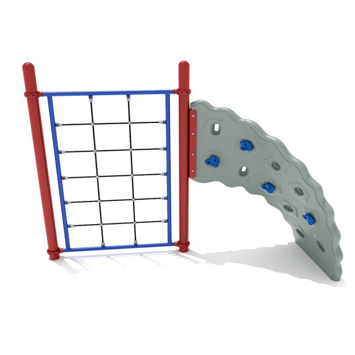 Inspire strength, balance, and confidence with the 1 Panel Rope Challenger Playground Rock Wall – a compact climber designed for children ages 5 to 12. This freestanding play structure features a wavy climbing panel paired with a durable rope net for dual-sided climbing fun. Whether scaling the molded rock wall or navigating the rope web, kids will enjoy physical and social engagement in a safe, challenging environment. Built with a powder-coated steel frame and weather-resistant components, this rock wall is ideal for schools, parks, and playgrounds looking to promote active play in limited spaces.