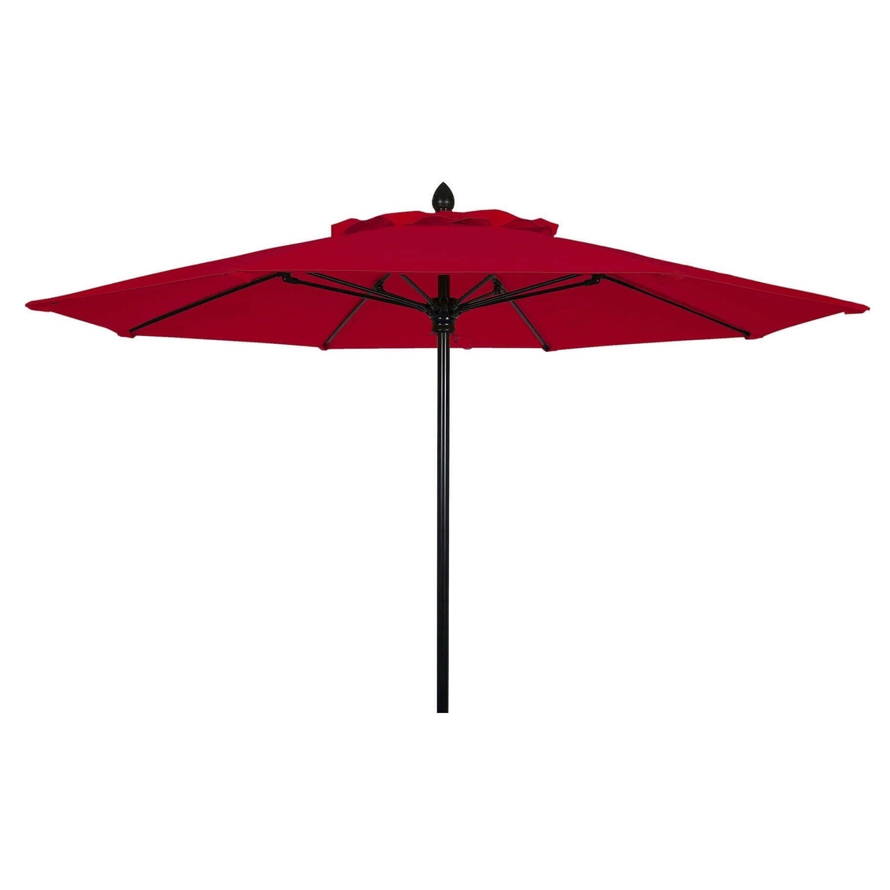 This 7.5 ft octagonal commercial market umbrella with aluminum pole and marine grade fabric has solid .5" thick fiberglass ribs molded with nylon joints and end tips that are both incredibly strong and flexible. Fiberglass ribs are designed to absorb strong winds without breaking or permanently damaging the umbrella, making it more practical than steel or wood. Made from long-lasting marine-grade fabric by Outdura or Sunbrella, the canopy is designed to resist the bleaching effects from the sun's UV rays. The umbrella canopy also has a wind vent opening in the top that allows the wind to escape, keeping the umbrella from flying away. The heavy-duty 2-piece aluminum 1.5" diameter pole is powder-coated with your choice of a white or champagne coloring, for stylish protection that will never rust. Features a lift option of push-up, pin, or crank. All stainless steel hardware included.