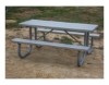 Our 8 ft. commercial aluminum picnic table with welded steel frame complements aluminum bleachers and player's benches, making it a favorite at ballparks, sports complexes, and schools. Featuring top and seats made from anodized light-weight aluminum that will never rust or rot. The heavy-duty frame is 1-5/8" O.D. welded steel which makes a stronger, more durable table than its bolted equivalent due to the absence of potential loosen hardware. A 1-1/2" by 1-1/2" center cleat provides a level top and sturdier attachments from the reinforced 1-5/16" cross braces, while the top and seats are 2" x 2" x 3/16". Available in your choice of galvanized or black powder coated finish. Comfortably seats 8 adults. This aluminum picnic table is made in the USA and comes with a 1-year commercial warranty.