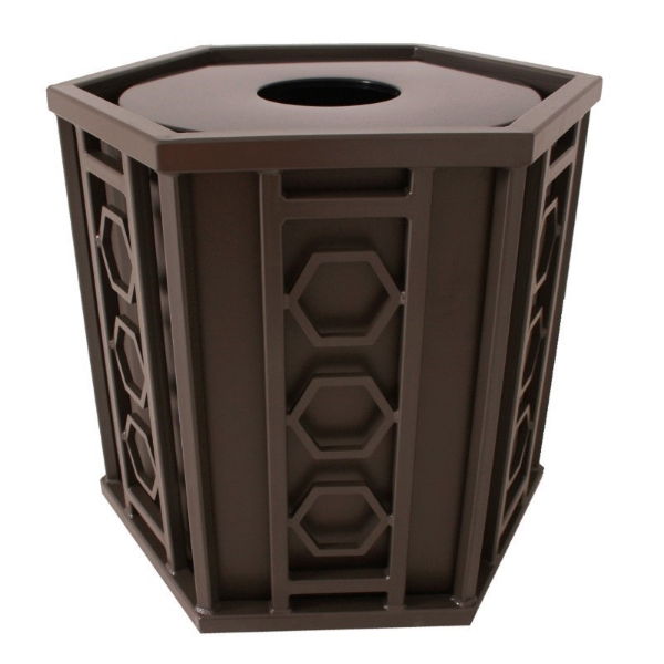 Our Biscayne 36 Gallon Powder Coated Steel Trash Receptacle with Lid is a stylish way to keep your country club, mall, or university free of litter. It features a double-layered design to keep the included 36-gallon heavy-duty liner hidden from sight. Choose from any of our vivid superdurable powder coat color options for both the receptacle and backplate to create a trash receptacle unique to your location. The receptacle is constructed of 1" thick square steel tubing with 1.5" thick top and bottom rings to increase stability. The frame features a sophisticated geometric design. Add refined style to your location with our Biscayne 36 Gallon Powder Coated Steel Trash Receptacle today!