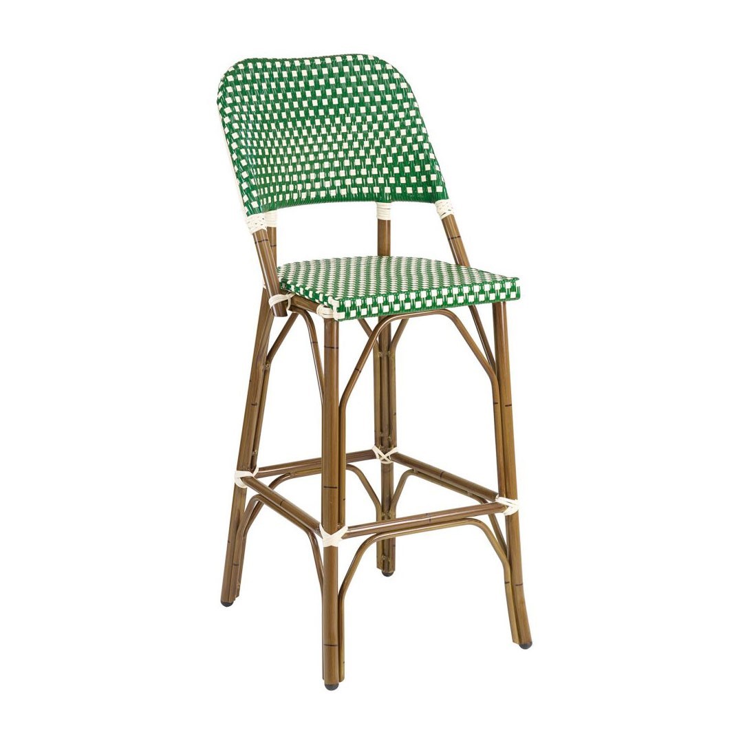 Our Fiji outdoor restaurant armless bar height chair features an aluminum frame that has been beautifully handpainted to look like bamboo. This outdoor bar chair is a stylish addition to tropical retreats, such as hotels, resorts, and cruise ships. The decorative back and seat are made of PE weave that is easy to maintain. We support our outdoor dining furniture with a 2-year commercial warranty.