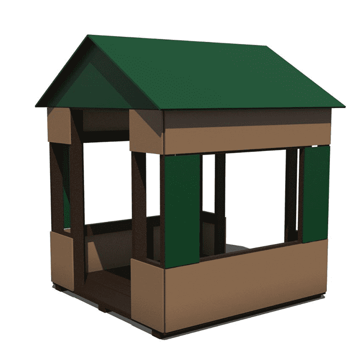 The Polytone Playhouse is a charming, commercial-grade structure built for toddlers aged 2–5. With its 5′ × 5′ footprint and 6½′ height, this durable polyethylene playhouse encourages imaginative and cooperative play. Made from high-density, UV-stable Polytone™ HDPE with a rot-resistant TREX floor and powder-coated steel frame, it features four functional shutters for drama play. Fully anchored and ASTM1487-17 compliant, this free-standing playhouse is perfect for preschools, daycares, parks, HOAs, and community play areas.