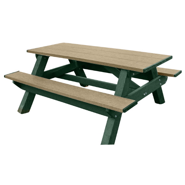 Our Recycled Plastic Picnic Table is the eco-friendly spin on the classic lumber picnic table. Made in the USA, this table is constructed of heavy-duty 100% recycled plastic that will never splinter, mold, or rot. Three 2"x10" 100% recycled plastic boards form a large tabletop, perfect for food and games alike. It is assembled with stainless steel fasteners, which will never rust. Backed by a 20-year commercial warranty, it is offered in 6ft. or 8ft. lengths, and several different UV-resistant color options, allowing you to create the perfect table for your location. Add the eco-friendly version of the classic picnic table to your space with our Recycled Plastic Picnic Table today!