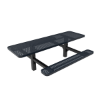 This 8-foot RHINO picnic table is fully ADA-compliant and made in the USA. It comes with a robust 7-year warranty and features a durable thermoplastic polyolefin coating on both the tabletop and seats. You can choose between either a 3/4" #9-gauge expanded metal or 1/2" perforated hole-punched steel for added protection. The table has a double pedestal design with a 4" x 4" powder-coated steel frame, which ensures it meets ADA standards and provides ample seating space. Additionally, it can be mounted on the surface or inground, making it suitable for various commercial settings.