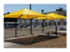 Our heavy-duty square cantilever umbrella shade structure is a more fixed shelter solution than your average cantilever umbrella. With the strength of a shade structure, this cantilever umbrella can stand through wind speeds up to 93 mph, while providing a large open area of shade to protect patrons and outdoor furniture from the sun. This makes an attractive addition to restaurants, HOA communities, sports complexes, and poolside resorts. The canopy is made with a polyethylene fabric that contains UV stabilizers to resist color fade. Glide Elbows are available for areas with high winds, snow, and ice to protect the shade by allowing you to easily remove and install the canopy. The steel frame is protected with a plastic powder coating to resist rust. Select an attractive color for the canopy and frame from our color options. Choose between the inground or surface mount footing that would best serve your location. Engineering drawings are recommended for projects that require permits. Our shade structures are made in the USA and supported by a 10-year warranty.