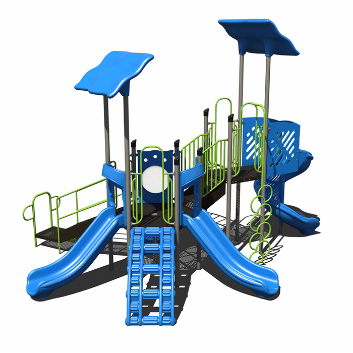 Sunbeam Slide Commercial Playground Equipment invites children ages 5 to 12 into a vibrant, multi-feature play system designed for both exploration and fun. With a mix of a straight 3-foot slide, a twisty right-turn slide, and a crawl tunnel, it offers varied ways to climb up and slide down. Climbers include a pod-style ladder and a straight-rung ladder, while a rain wheel panel adds sensory engagement. An ADA transfer station ensures inclusive access, and the sturdy 3.5-inch steel posts enhance durability. Crafted from weather-resistant commercial-grade materials and designed to meet ASTM and CPSC safety standards, the Sunbeam Slide brings dynamic, age-appropriate challenge and imaginative play to parks, schools, and community spaces, all within a compact footprint.