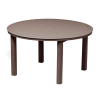 Our Telescope round marine grade polymer tabletop with commercial, aluminum frame is a gorgeous addition for home patios and hotel poolsides. Completely crafted out of durable marine grade polymer material, the slatted tabletop is designed to withstand the elements and clean up easily. A hole for an umbrella has been fitted in the center. The sturdier legs are made with aluminum powder-coated to ensure long-lasting durability. Pick between solid or two-tone colors for the top and bottom to create the perfect outdoor dining table for your space. Plastic glides on all legs help to protect the deck or patio surface. The 54" round tabletop provides ample space for 6 chairs comfortably.