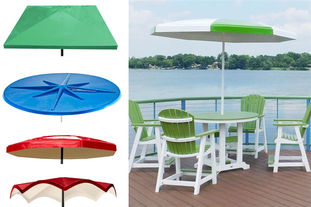 Fiberglass umbrellas are available in sizes ranging from 6' to 8' and come in the following styles:
